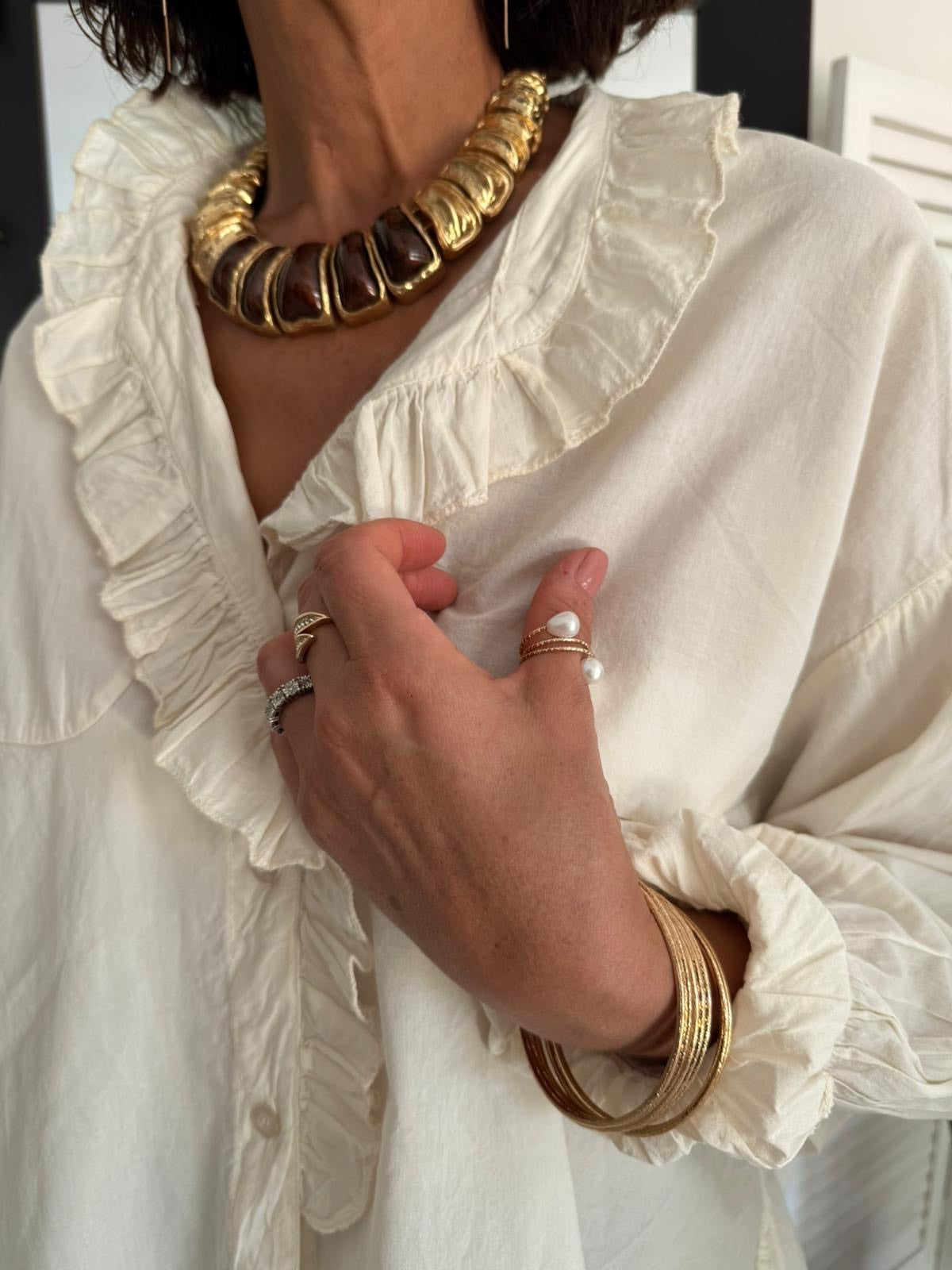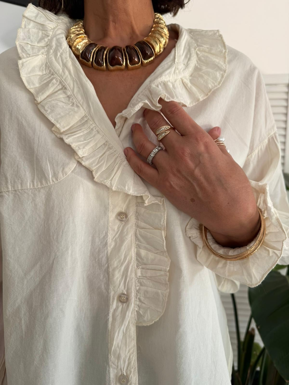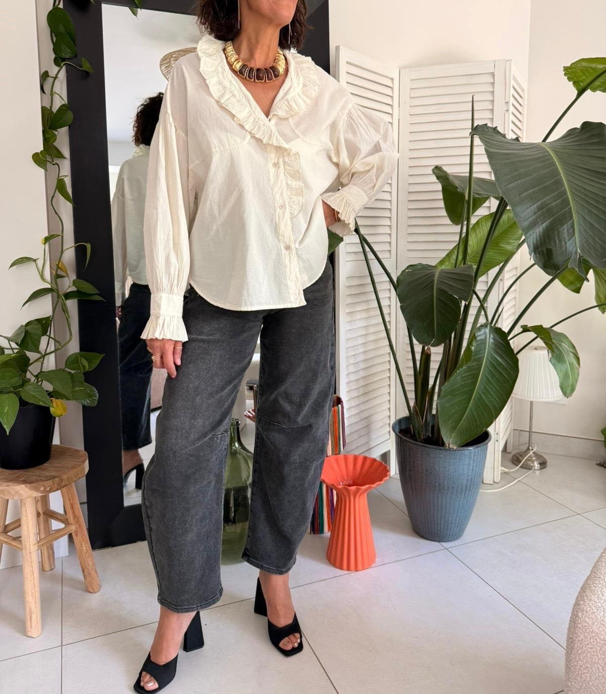 Apportez une touche de féminité et de légèreté à votre garde-robe avec le chemisier Camille. Confectionné dans une matière fluide et aérienne, il offre un confort optimal tout au long de la journée. Son col en mousseline délicate apporte élégance et raffinement.